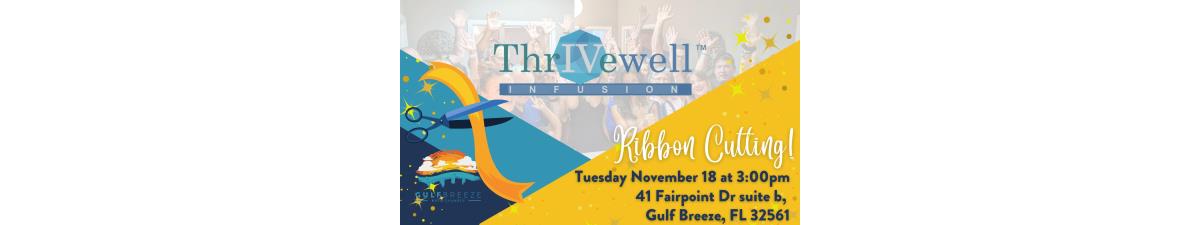 Join us as we welcome Thrivewell Infusion to the Gulf Breeze Area Chamber with a ribbon cutting celebration! Thrivewell Infusion provides comfortable, patient-centered IV therapy and infusion care in a relaxing, boutique-style setting. Come meet their team and help us celebrate their new Chamber membership!